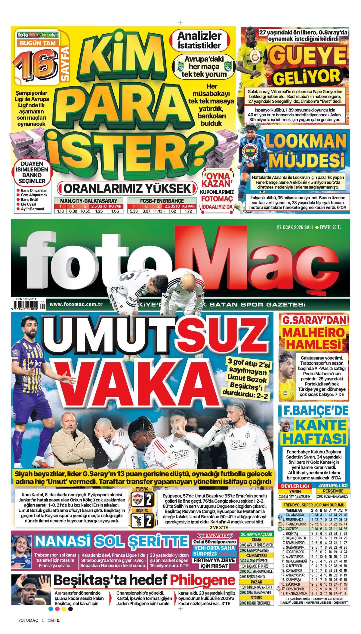 Fotomaç Gazetesi 28 Ocak 2026 Günü Manşeti