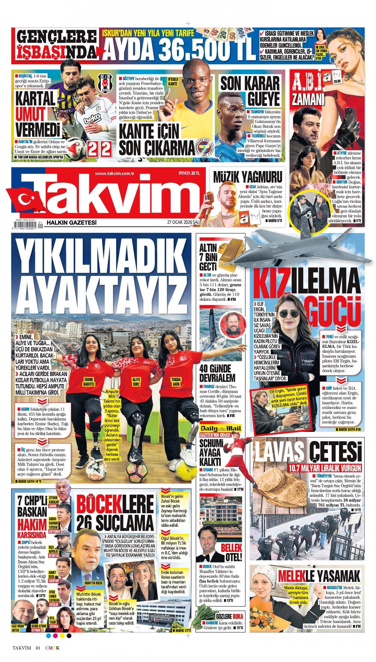 Takvim Gazetesi 28 Ocak 2026 Günü Manşeti
